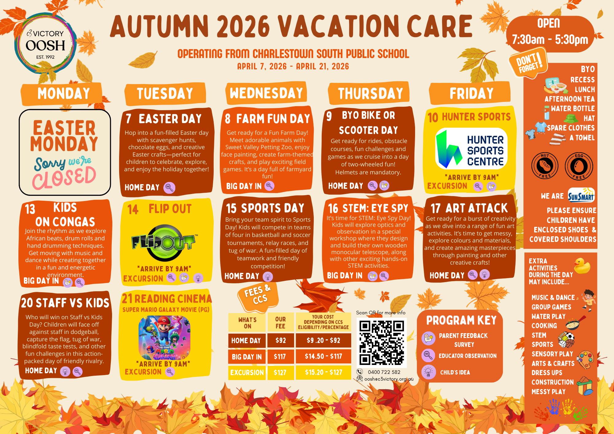 To book days for Vacation Care you must first be enrolled at Victory OOSH. Day bookings cannot be accepted until the enrolment process has been completed.